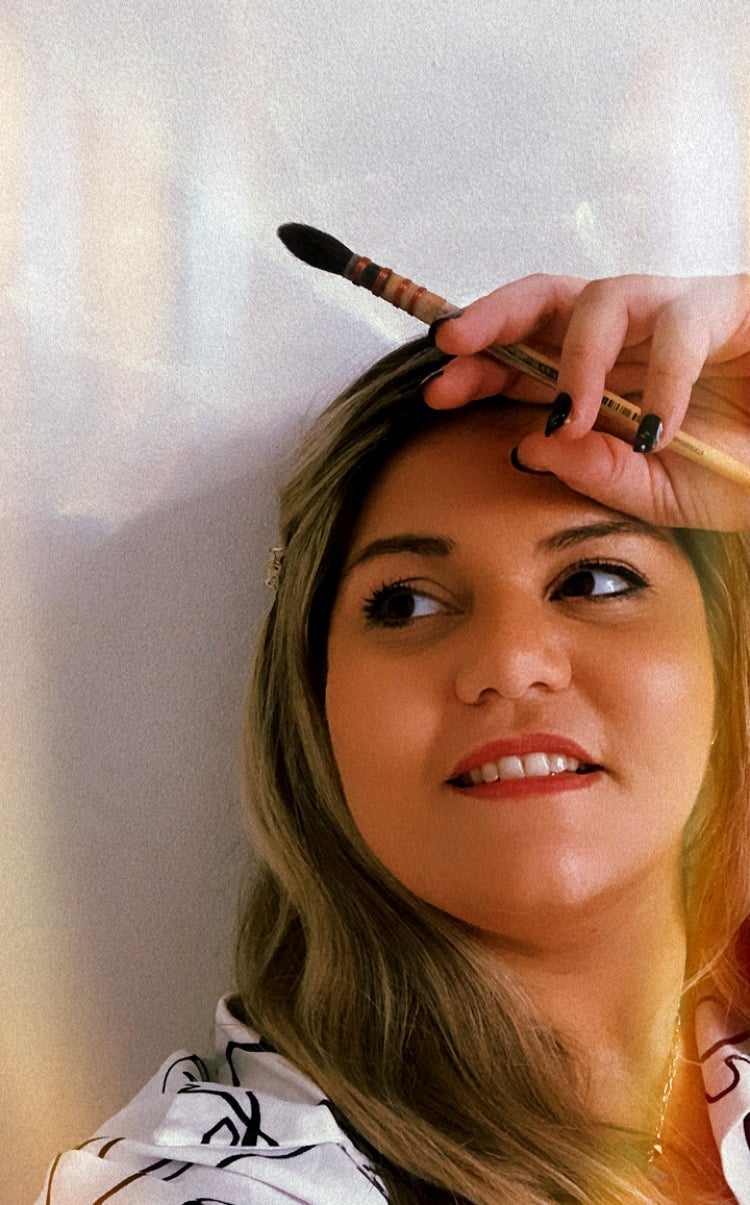 Sou a criadora do método autoral Cosmic Art School e a tua guia nesse relembrar da arte ritualística como ferramenta de integração de luz e sombra. A Cosmic Art School nasceu da experiência de libertação do meu próprio expressar.